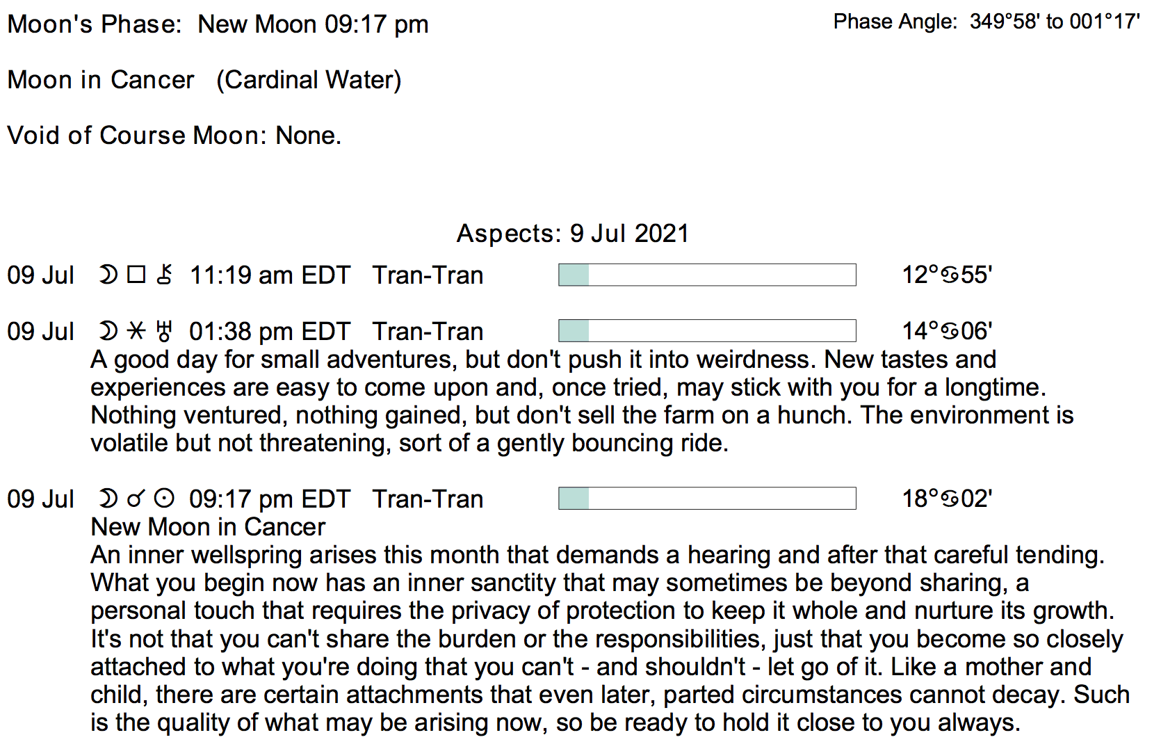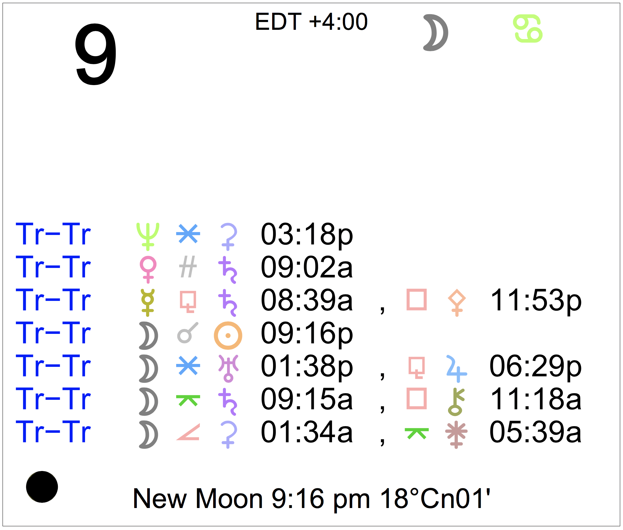- The New Moon occurs today at 9:16 PM in the sign of Cancer.