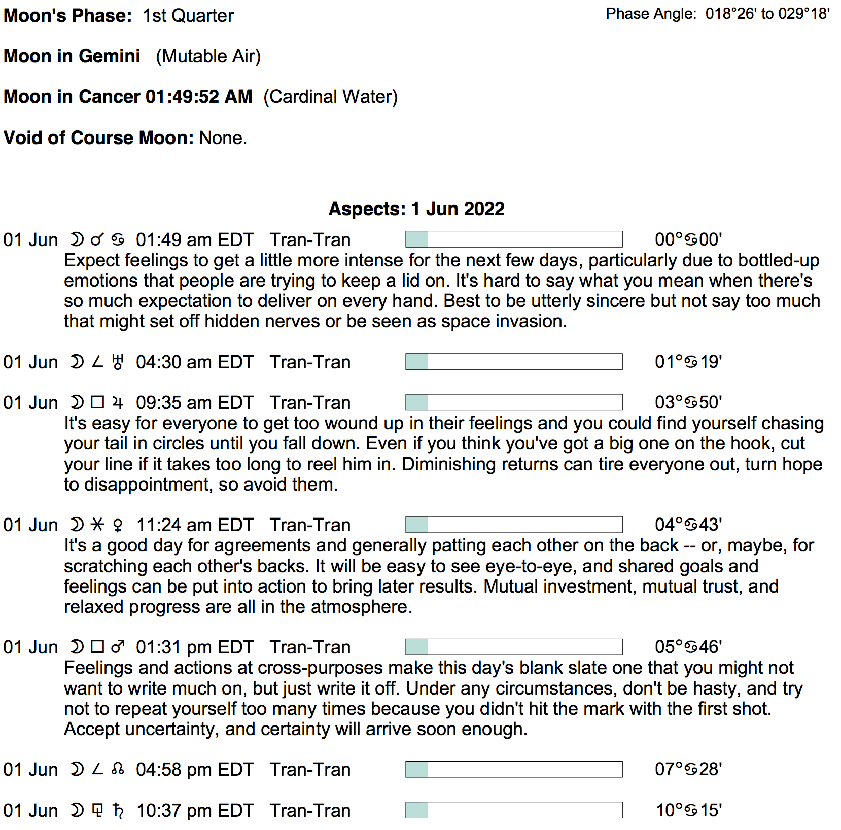 If you’re astrologically inclined and interested in the details of the Astrology of today, here are some of the factors considered in the forecasts: