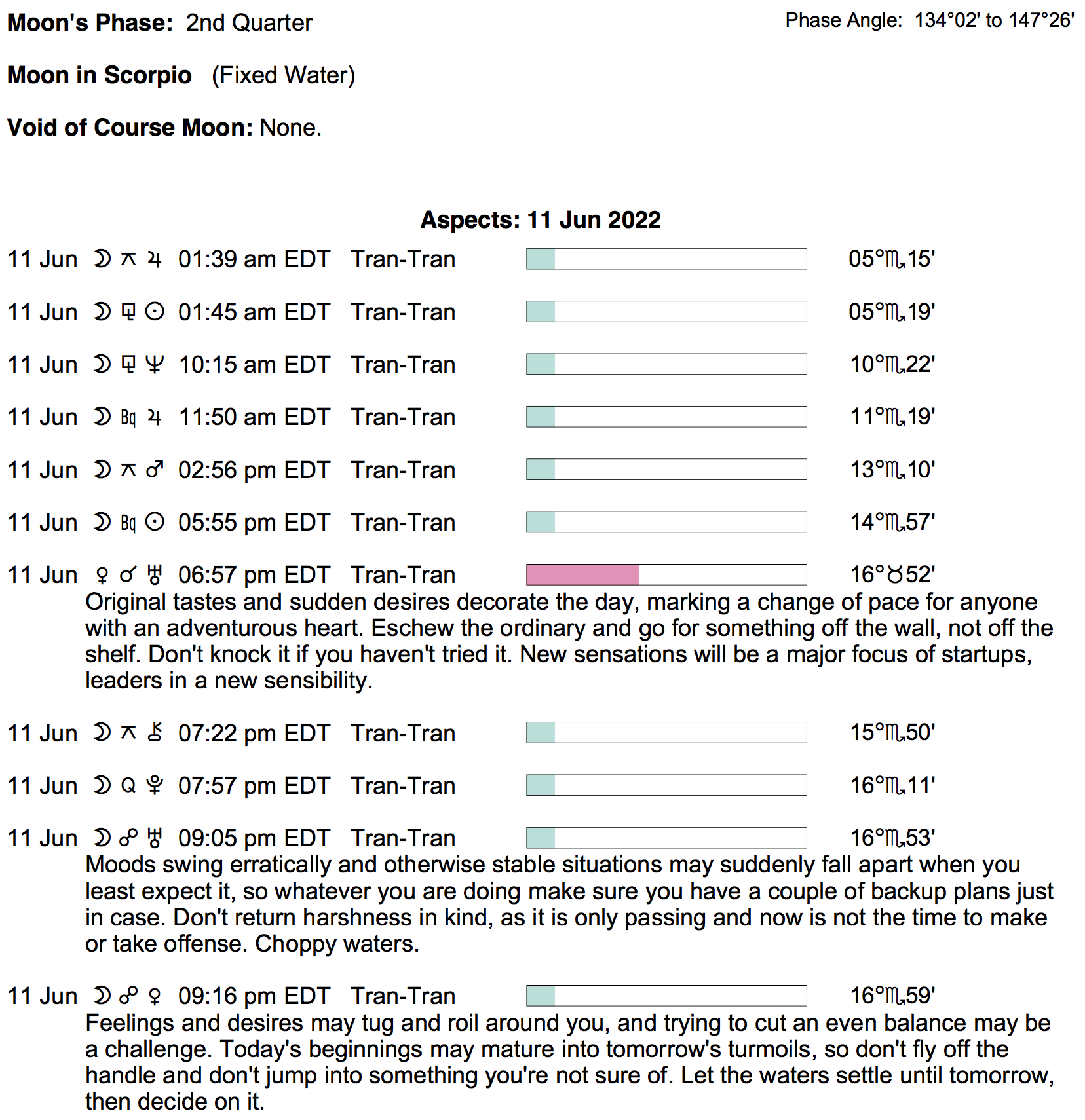 If you’re astrologically inclined and interested in the details of the Astrology of today, here are some of the factors considered in the forecasts: