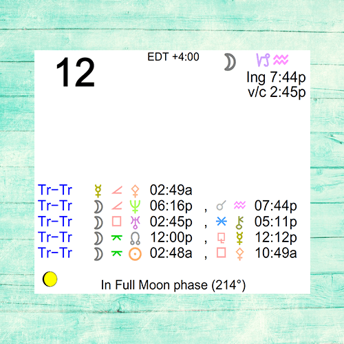Description: Transiting Moon Entering Aquarius