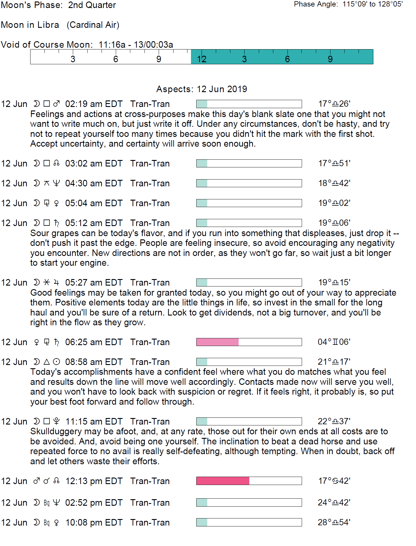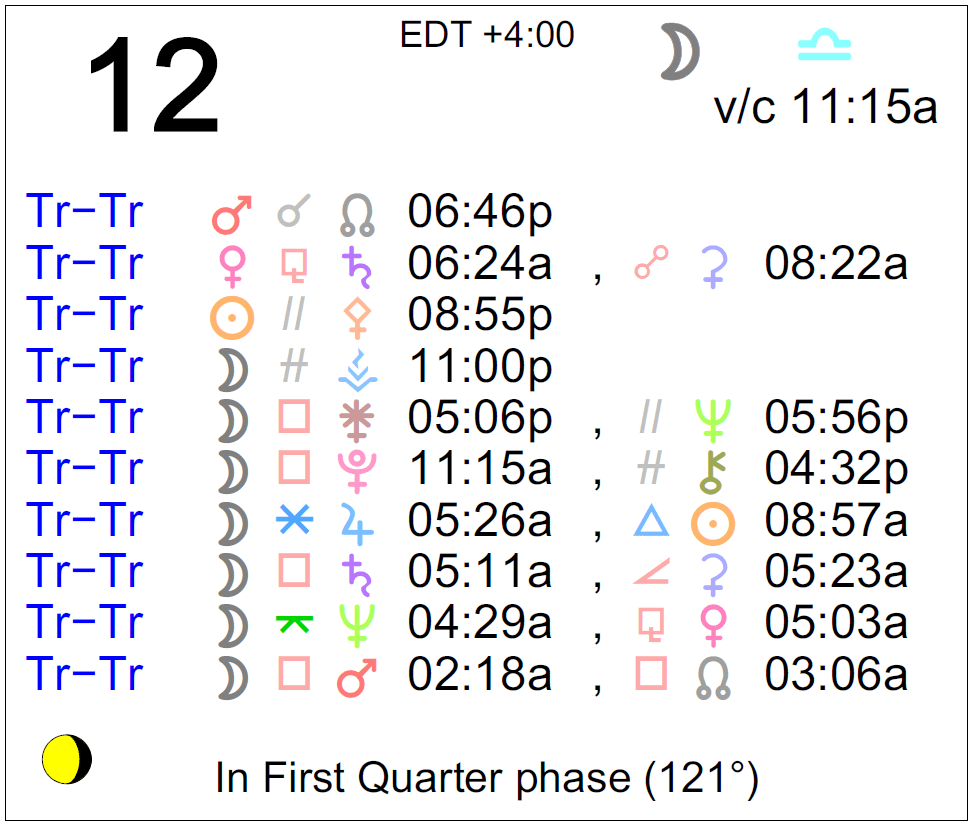 - The Moon is void from 11:15 AM forward (until tomorrow when the Moon enters Scorpio).