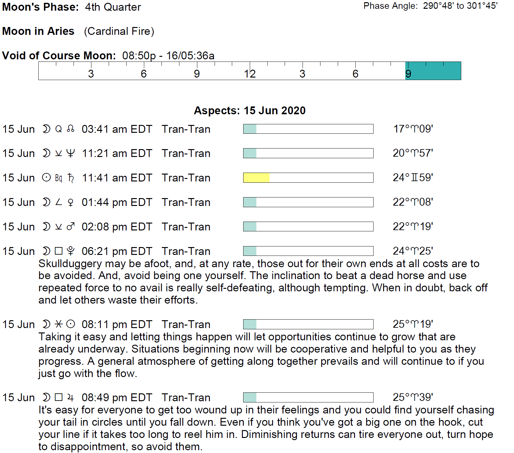 If you’re astrologically inclined and interested in the details of the Astrology of today, here are some of the factors considered in the forecasts: