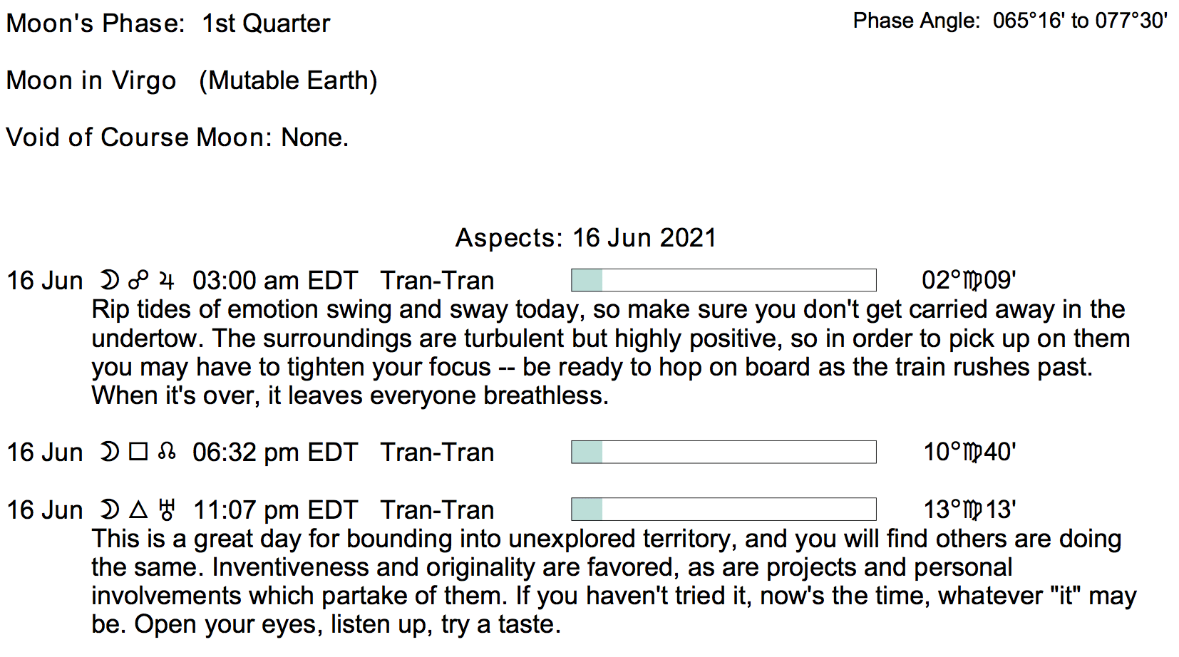 If you’re astrologically inclined and interested in the details of the Astrology of today, here are some of the factors considered in the forecasts: