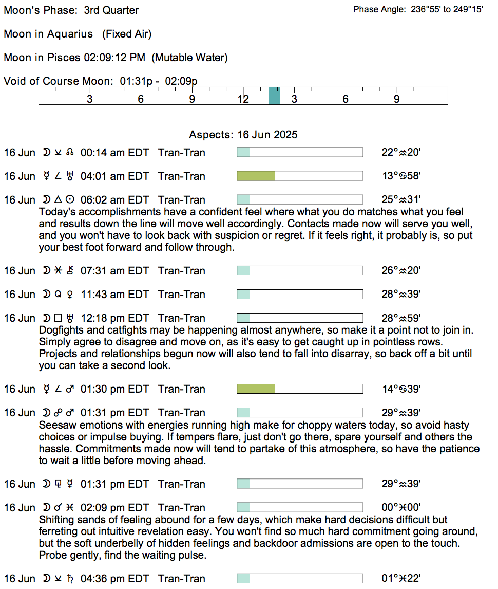 If you’re astrologically inclined and interested in the details of the Astrology of today, here are some of the factors considered in the forecasts: