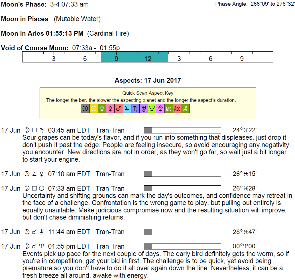 The following aspects (major only) and positions are at noon (EDT) on June 17th:
