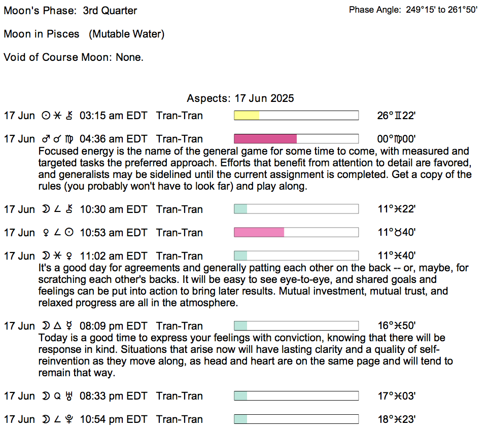 If you’re astrologically inclined and interested in the details of the Astrology of today, here are some of the factors considered in the forecasts: