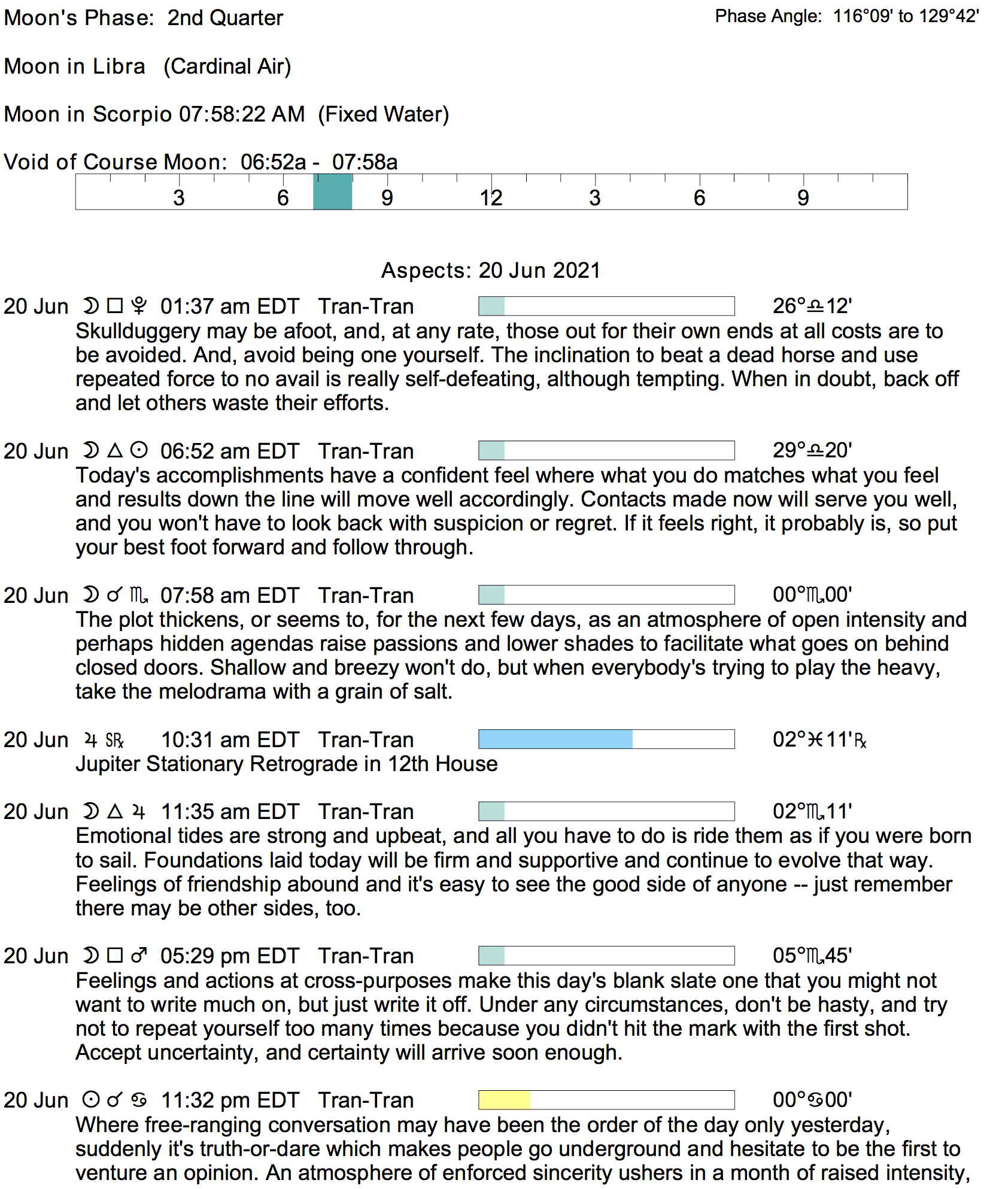 - Jupiter stations and turns retrograde today (Jupiter is retrograde from June 20th to October 18th).