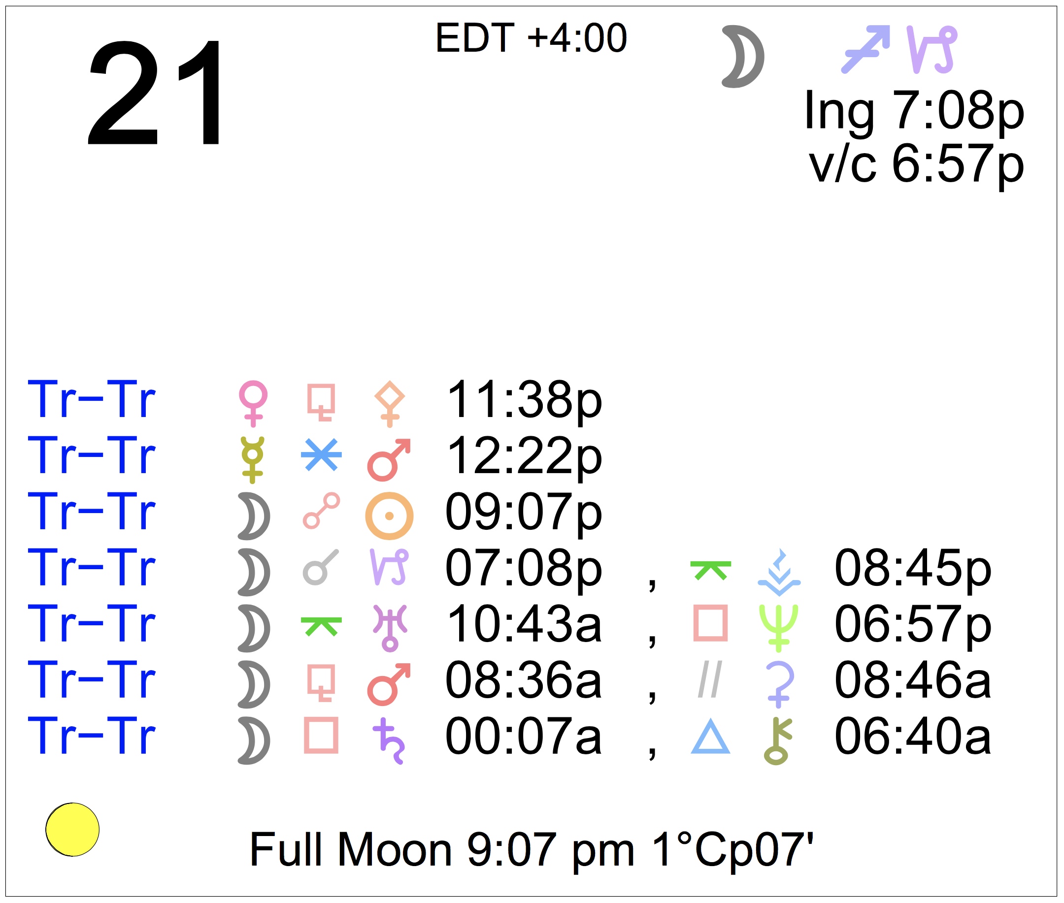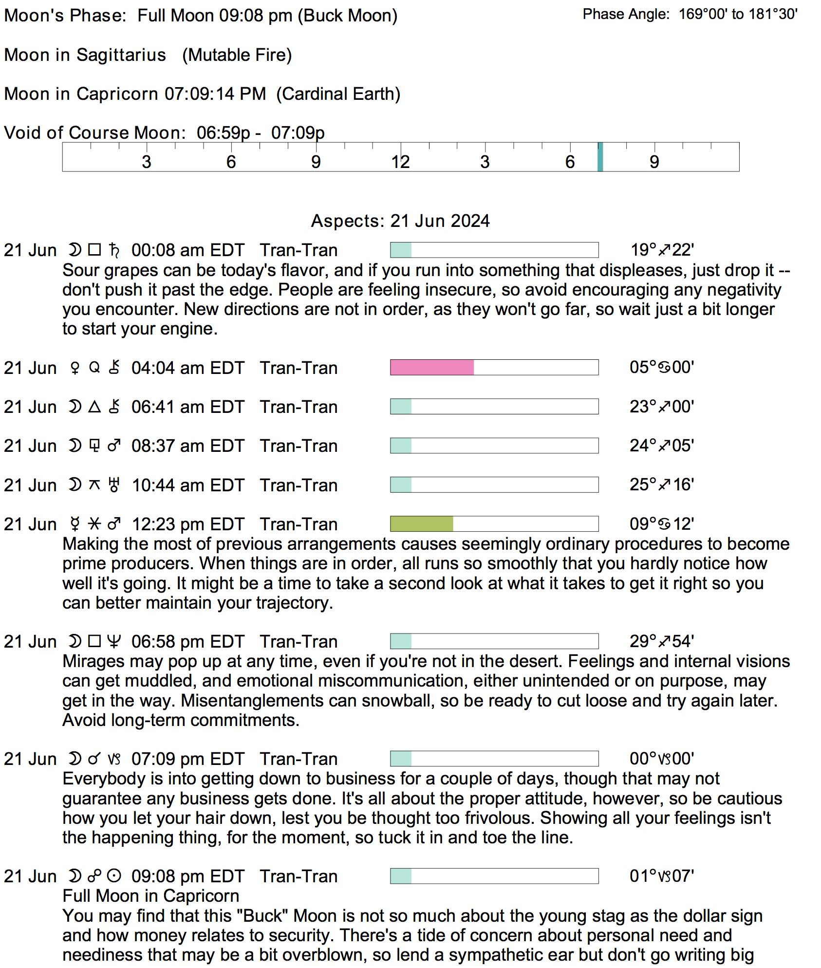 - The Full Moon occurs today at 9:07 PM in the sign of Capricorn.