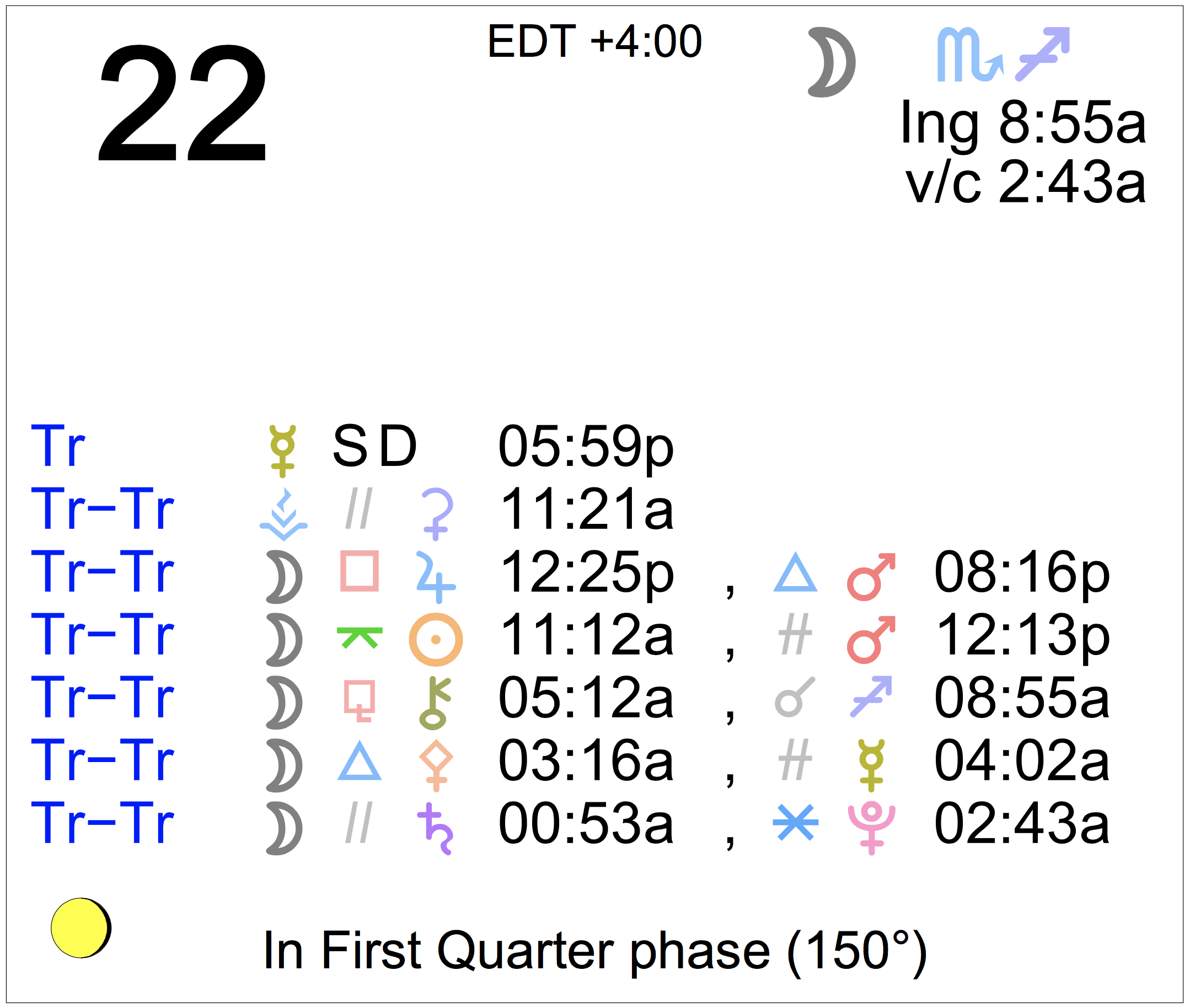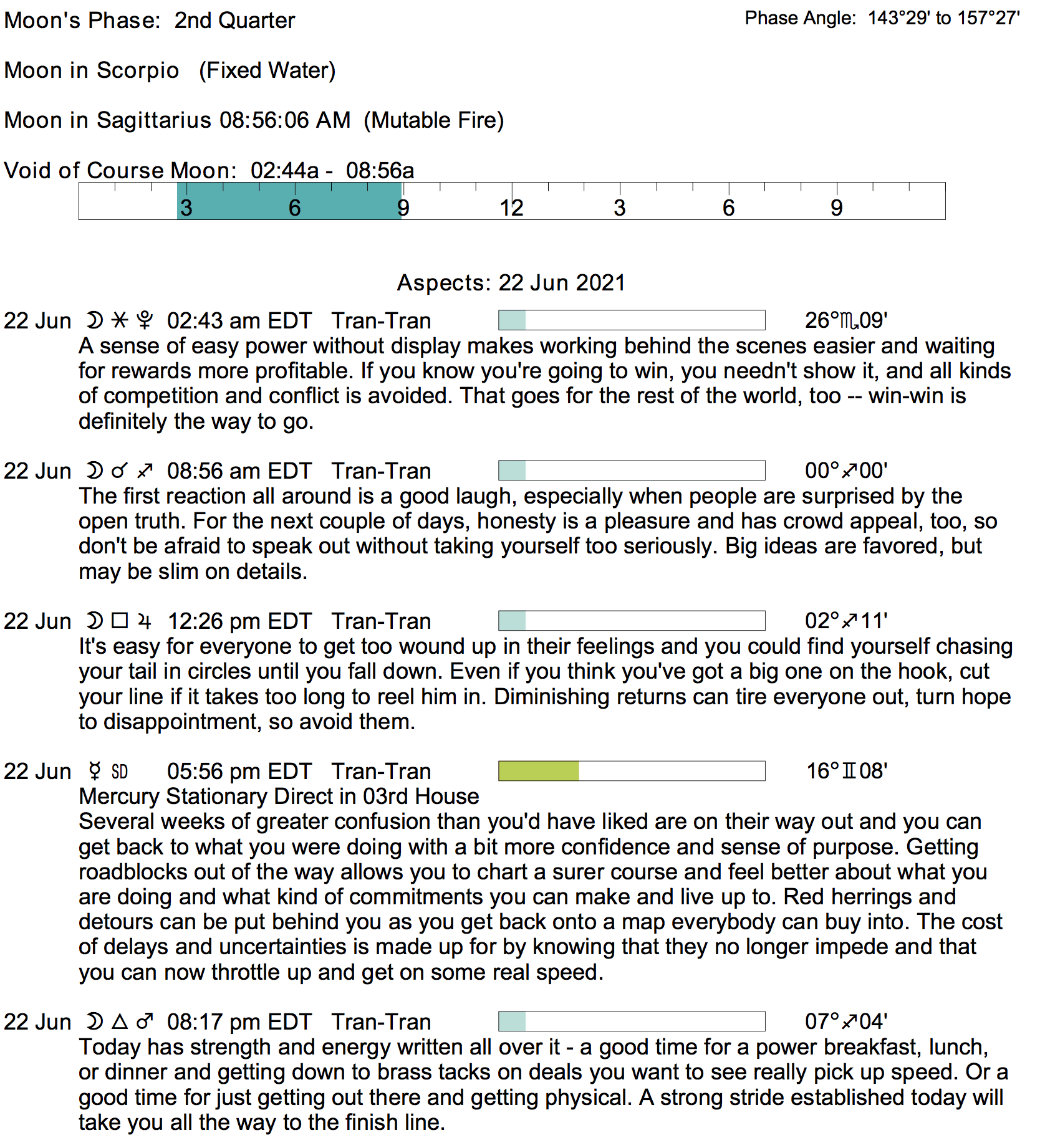 - A void Moon period occurs from 2:43 AM to 8:55 AM today.