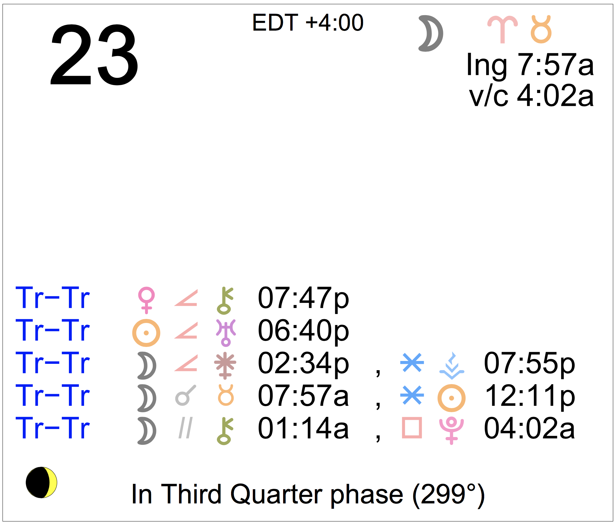 - A void Moon period occurs from 4:02 AM to 7:57 AM today.