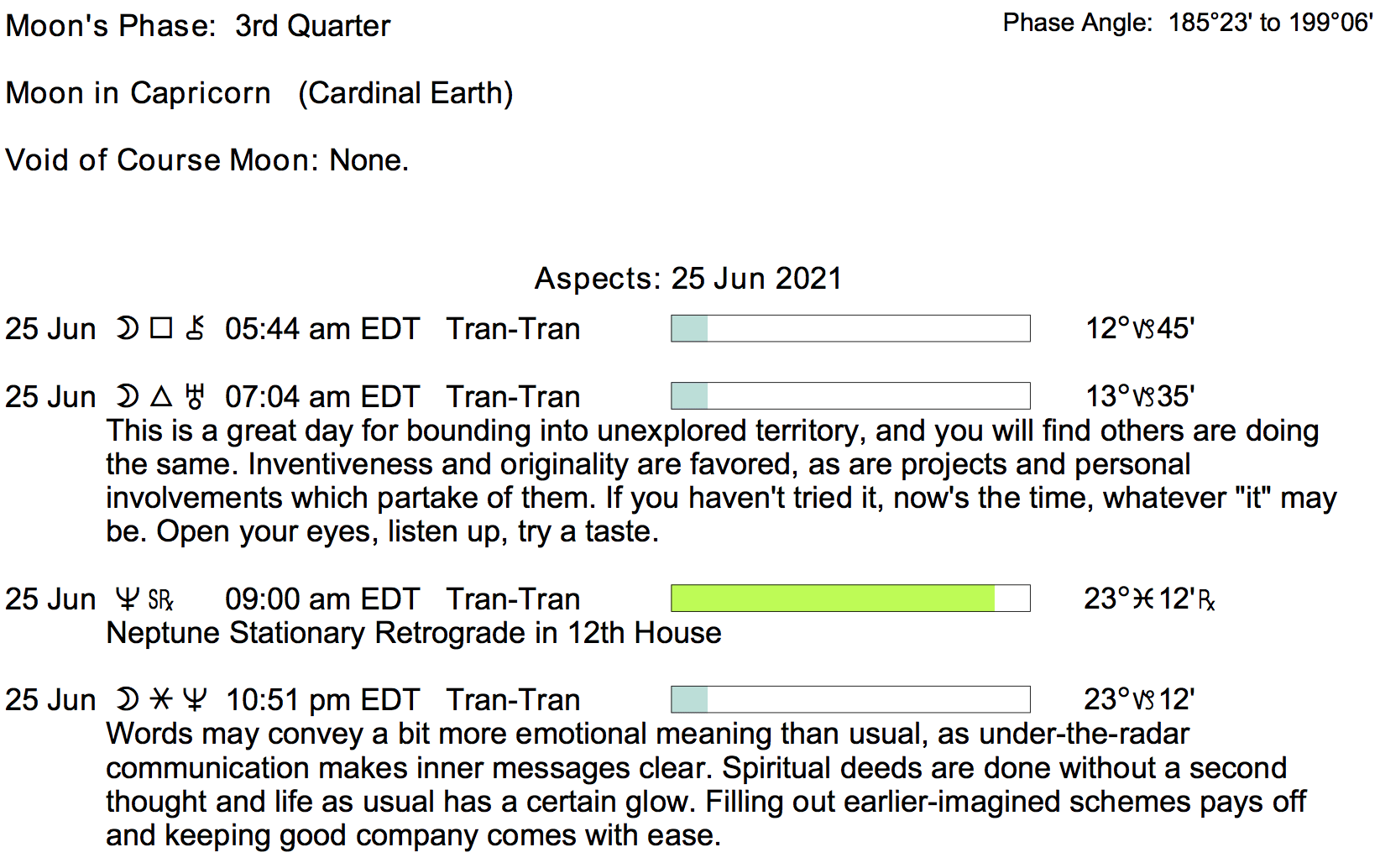 - Neptune stations and turns retrograde today (Neptune is retrograde from June 25th to December 1st).