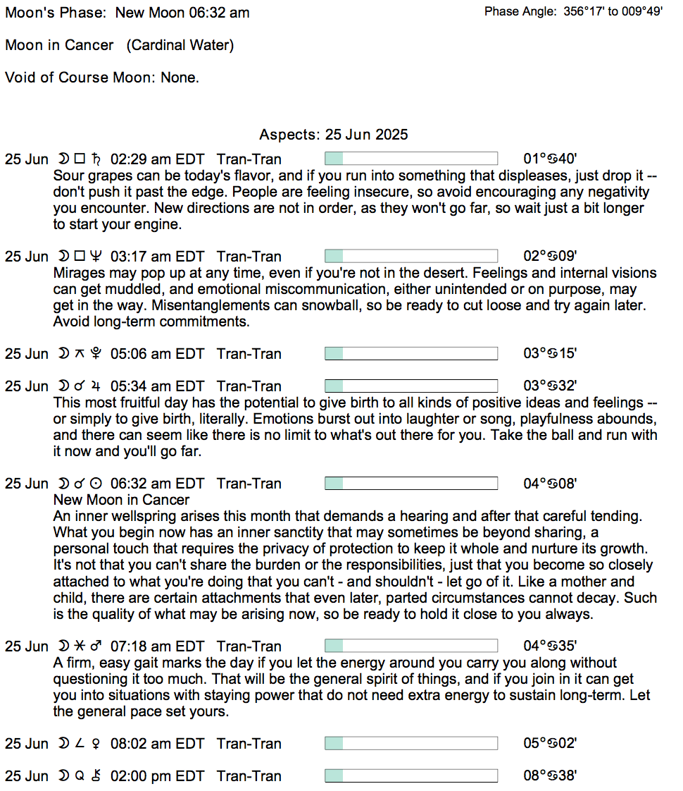 - The New Moon occurs in the sign of Cancer today at 6:31 AM.