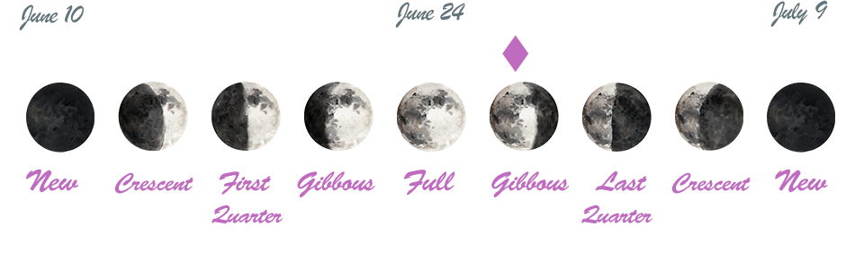 - The Full Moon occurred on the 24th in the sign of Capricorn, and the Last Quarter Moon will happen on July 1st.