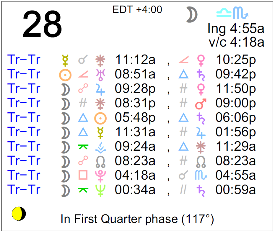 - A void Moon period occurs from 4:18 AM to 4:55 AM today.