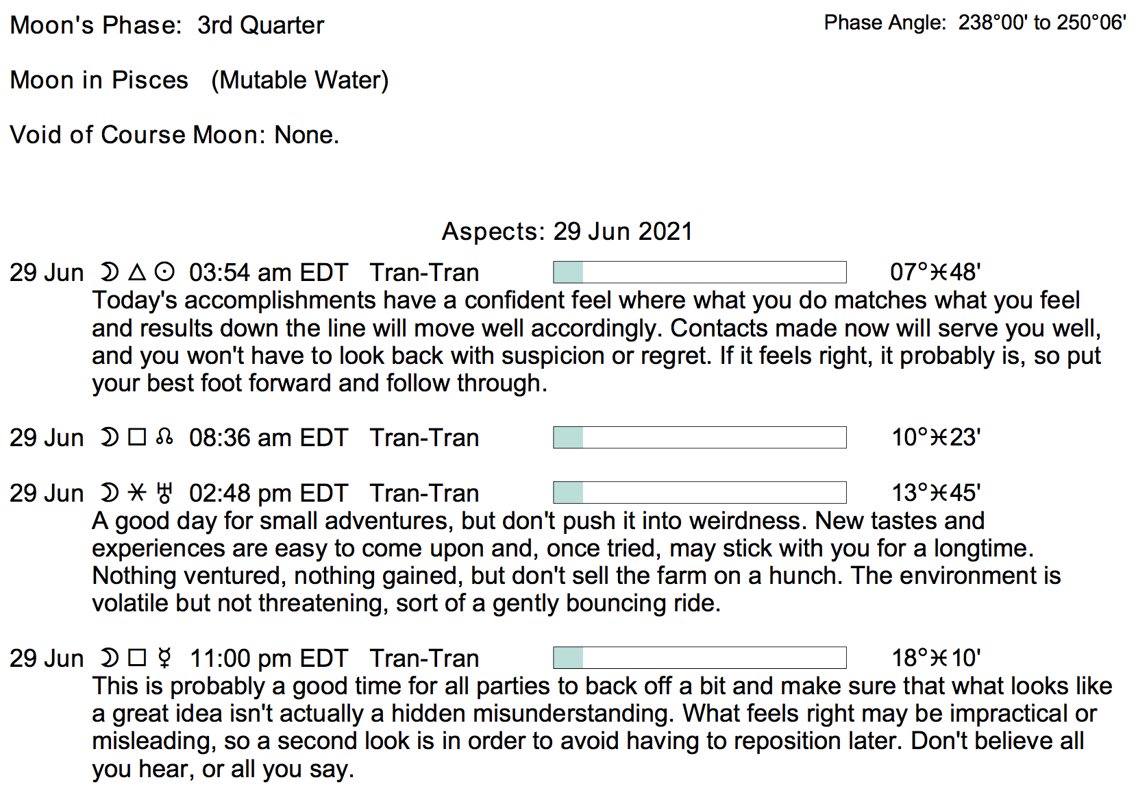 If you’re astrologically inclined and interested in the details of the Astrology of today, here are some of the factors considered in the forecasts: