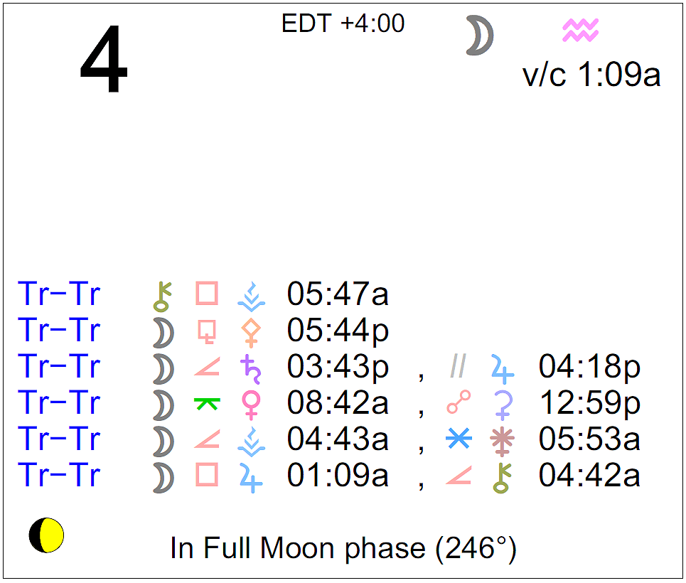 The Moon is in Aquarius all day.- The Moon is void from 1:09 AM forward (until tomorrow at 6:53 AM).