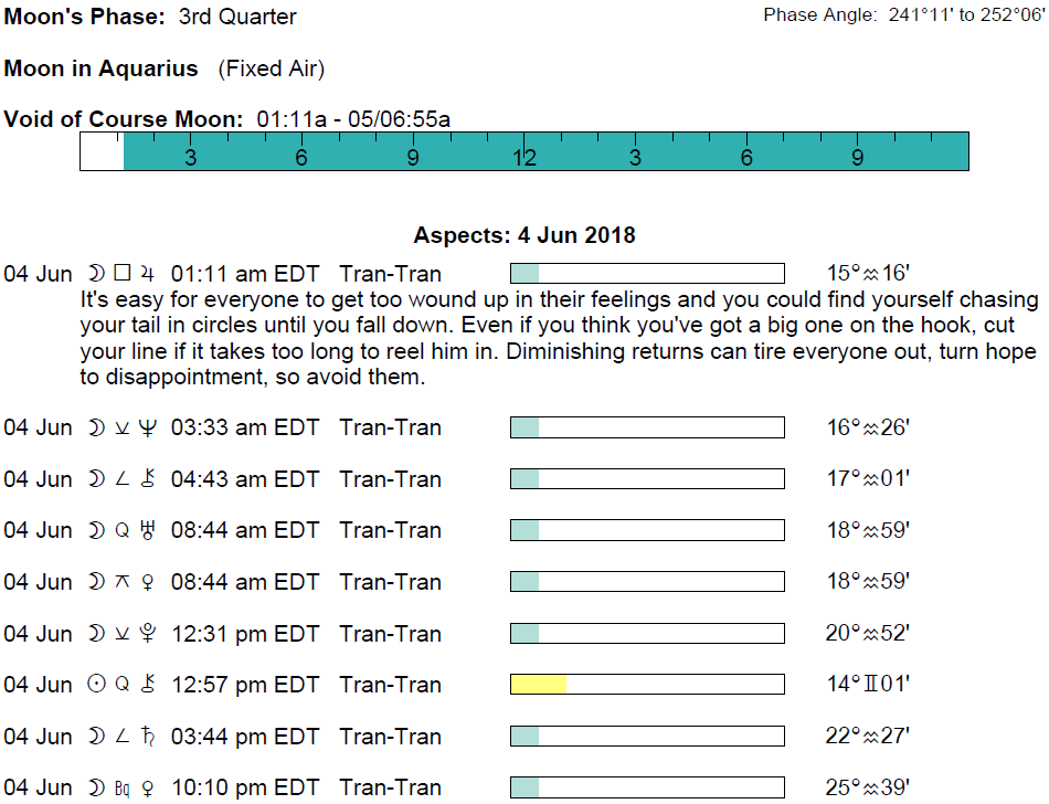 The following aspects (major only) and positions are at noon (EDT) on June 4th: