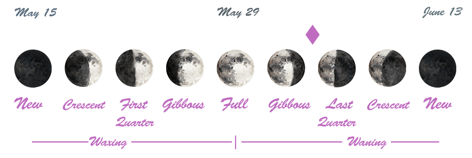 - The Full Moon occurred on May 29th and the Last Quarter Moon will happen on June 6th.