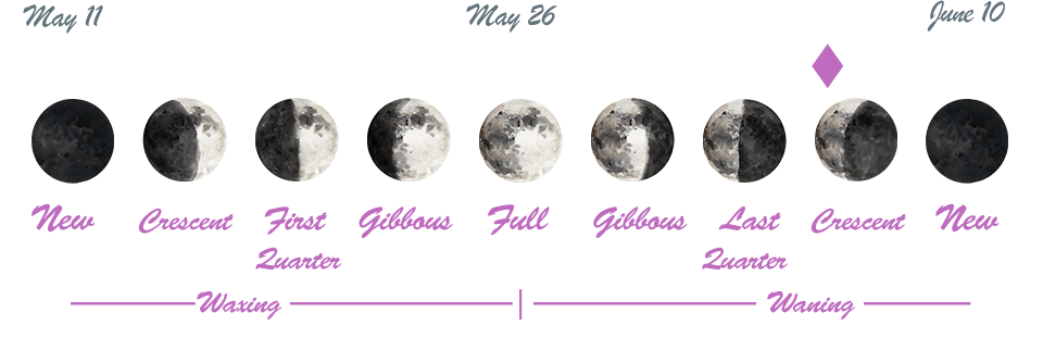 - We are between the Last Quarter Moon that occurred on June 2nd, and the New Moon (Solar Eclipse) that will occur on June 10th.