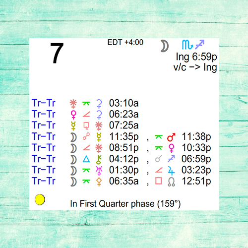- The Moon is in Scorpio until 6:59 PM, after which the Moon is in Sagittarius.