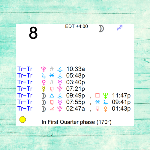 The following aspects (major only) and positions are at noon (EDT) on June 8th: