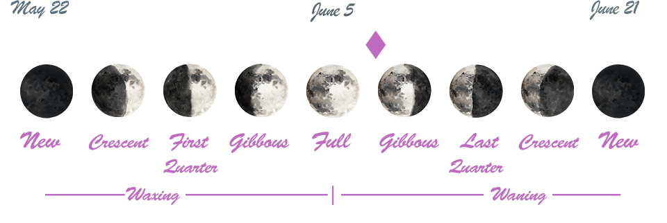 - The Full Moon Lunar Eclipse occurred on the 5th in the sign of Sagittarius, and the Last Quarter Moon will occur on June 13th.