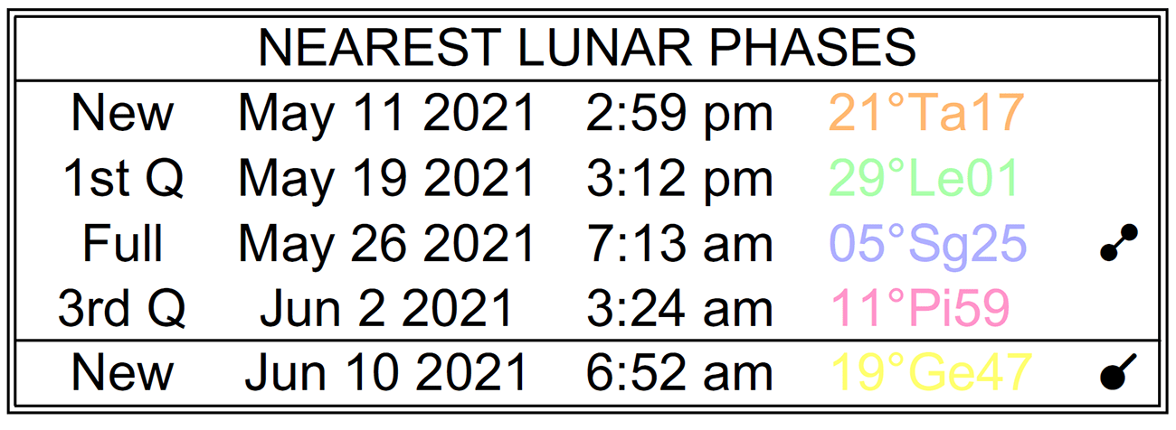 Planet Color Key: The longer the bar, the slower the aspecting planet, and the longer the duration of the planet’s transit.