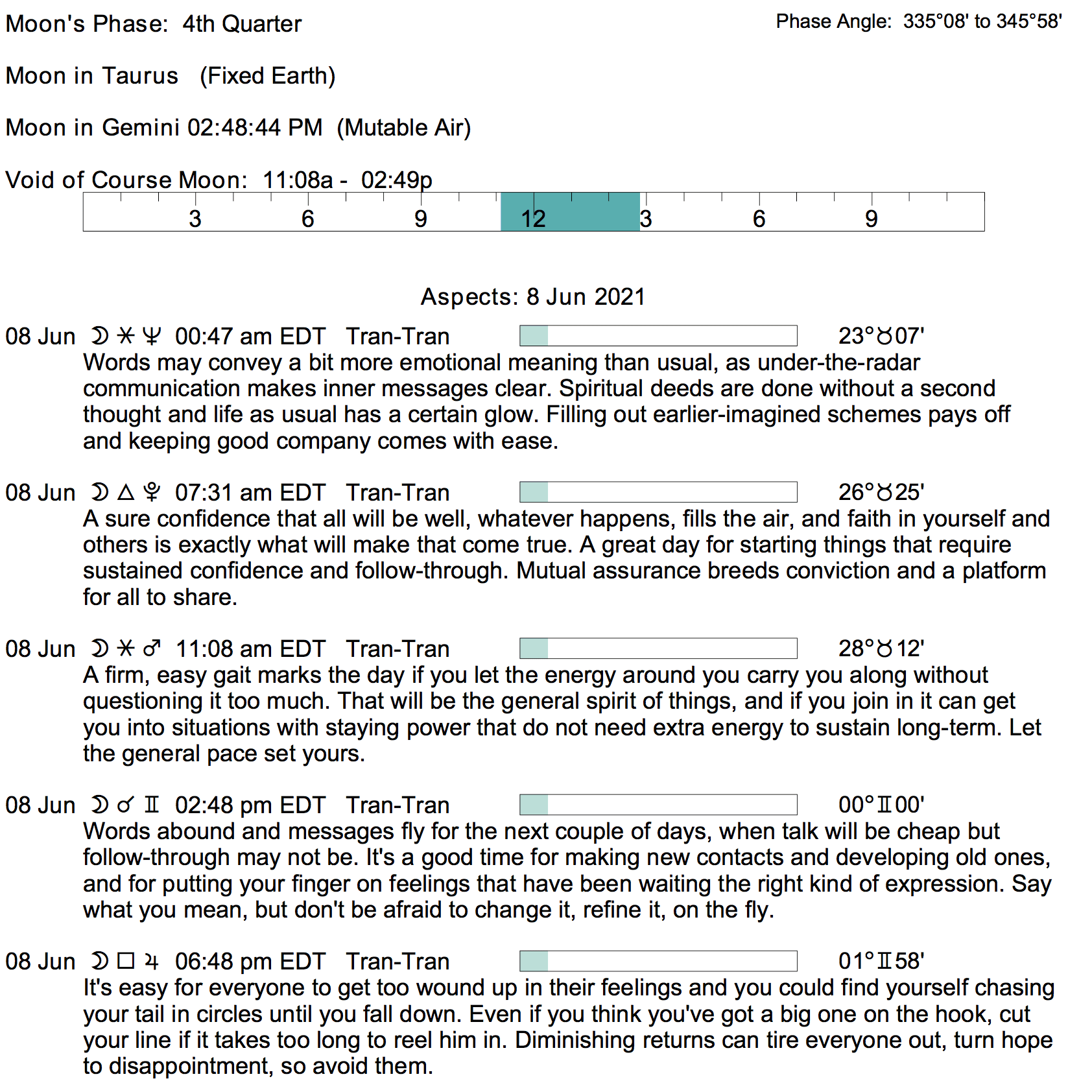 If you’re astrologically inclined and interested in the details of the Astrology of today, here are some of the factors considered in the forecasts: