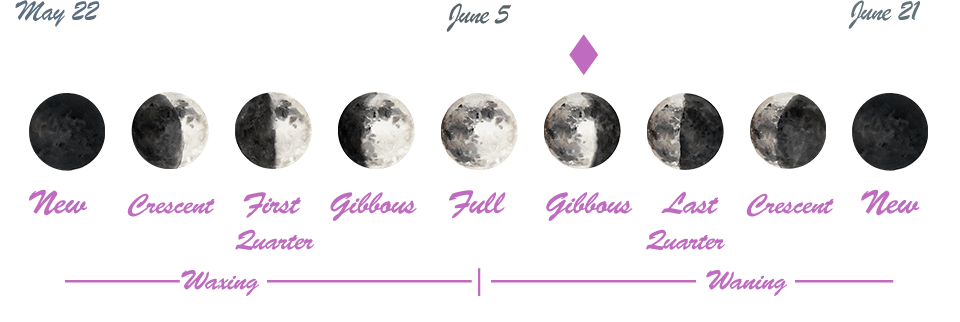 - The Full Moon Lunar Eclipse occurred on the 5th in the sign of Sagittarius, and the Last Quarter Moon will occur on June 13th.
