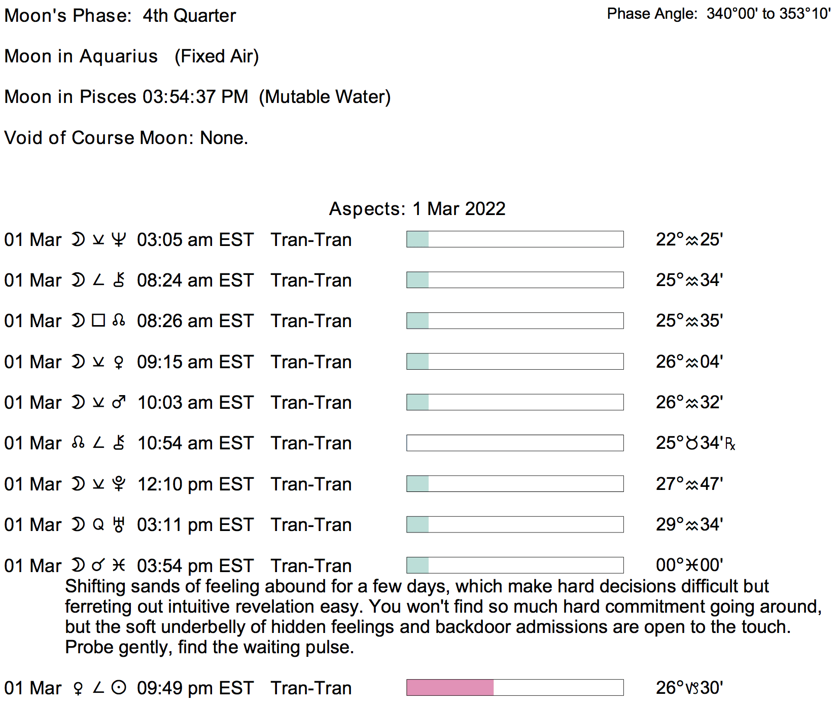 If you’re astrologically inclined and interested in the details of the Astrology of today, here are some of the factors considered in the forecasts: