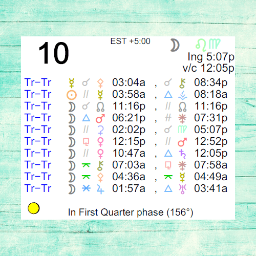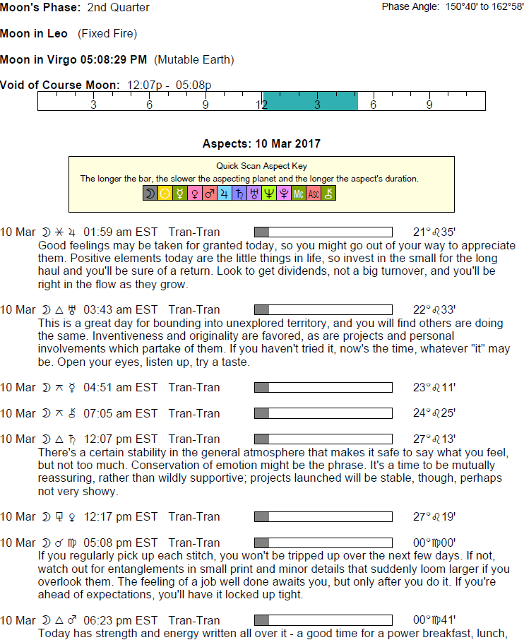 - The Moon is in Virgo from 5:07 PM forward (until Monday, March 13th, at 1:28 AM).