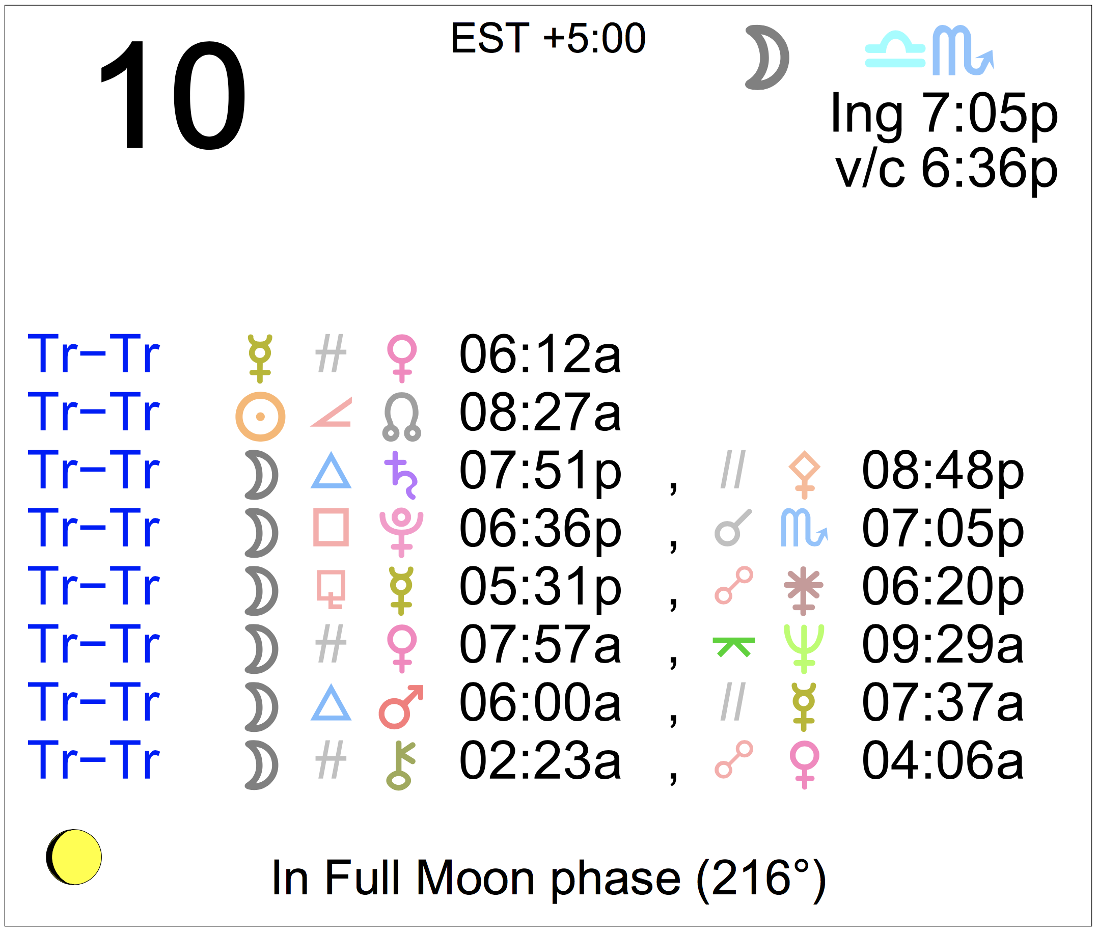 - A void Moon period occurs today from 6:36 PM to 7:05 PM.