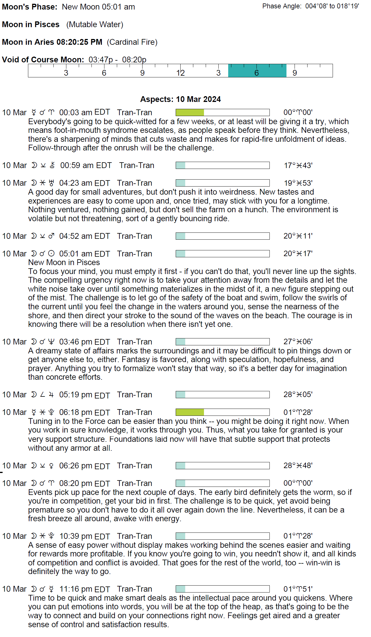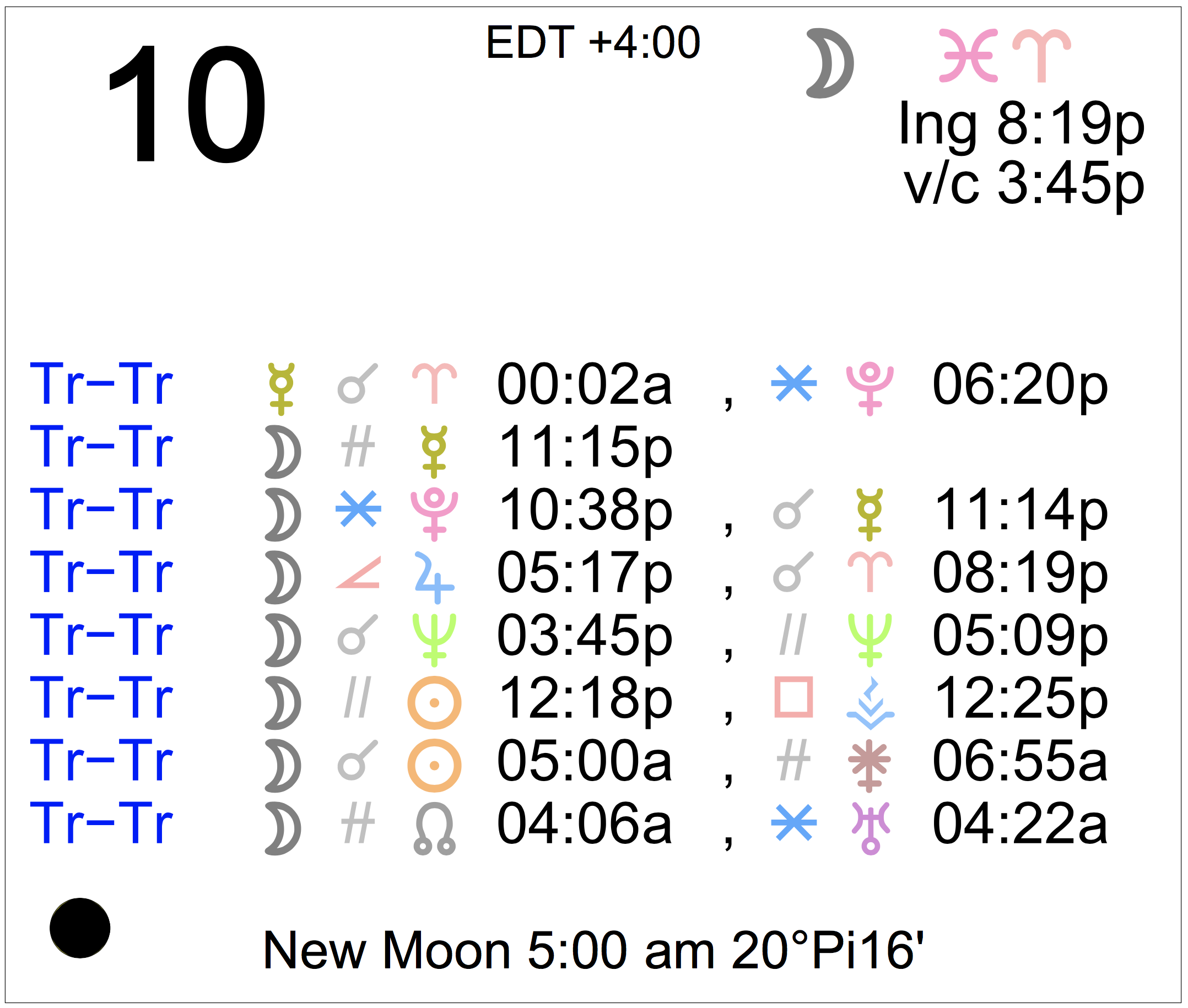 - The New Moon occurs today at 5:00 AM in the sign of Pisces.