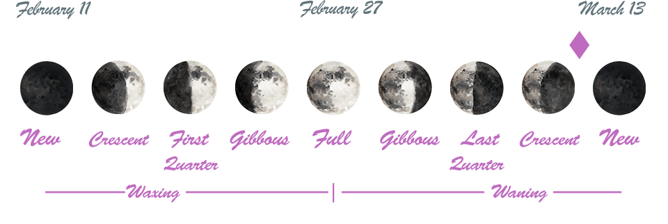 - The Last Quarter Moon occurred on the 5th, and the New Moon will occur on March 13th.