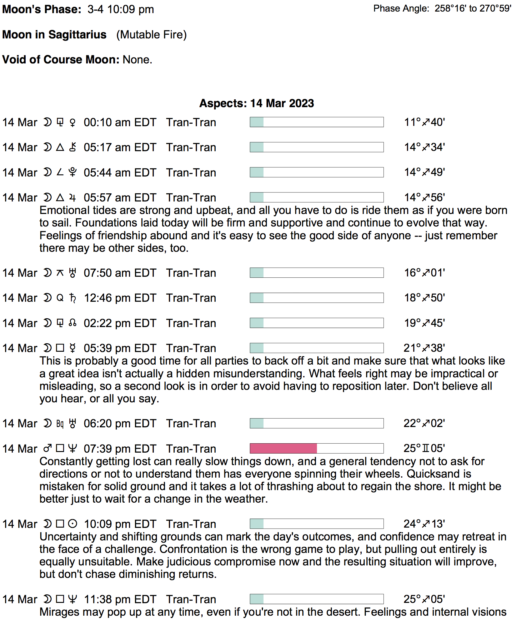 If you’re astrologically inclined and interested in the details of the Astrology of today, here are some of the factors considered in the forecasts: