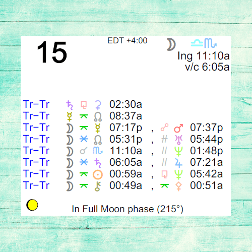 An auspicious time for any project demanding endurance or tolerance. Also good for establishing new habits and rituals.