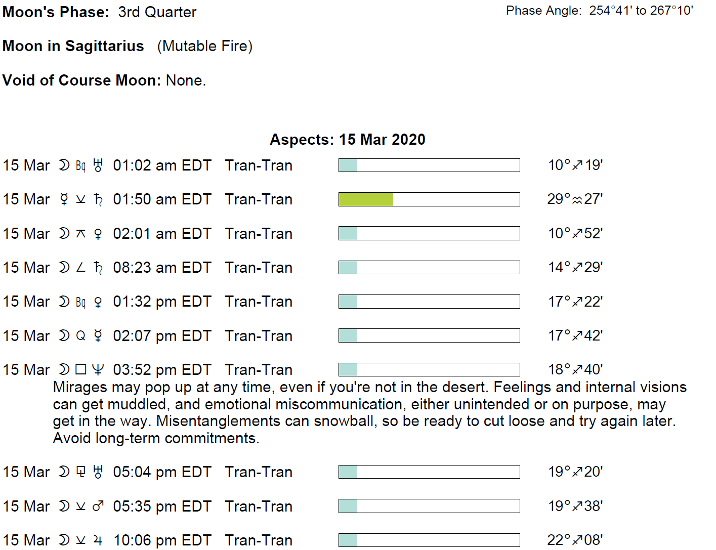 If you’re astrologically inclined and interested in the details of the Astrology of today, here are some of the factors considered in the forecasts: