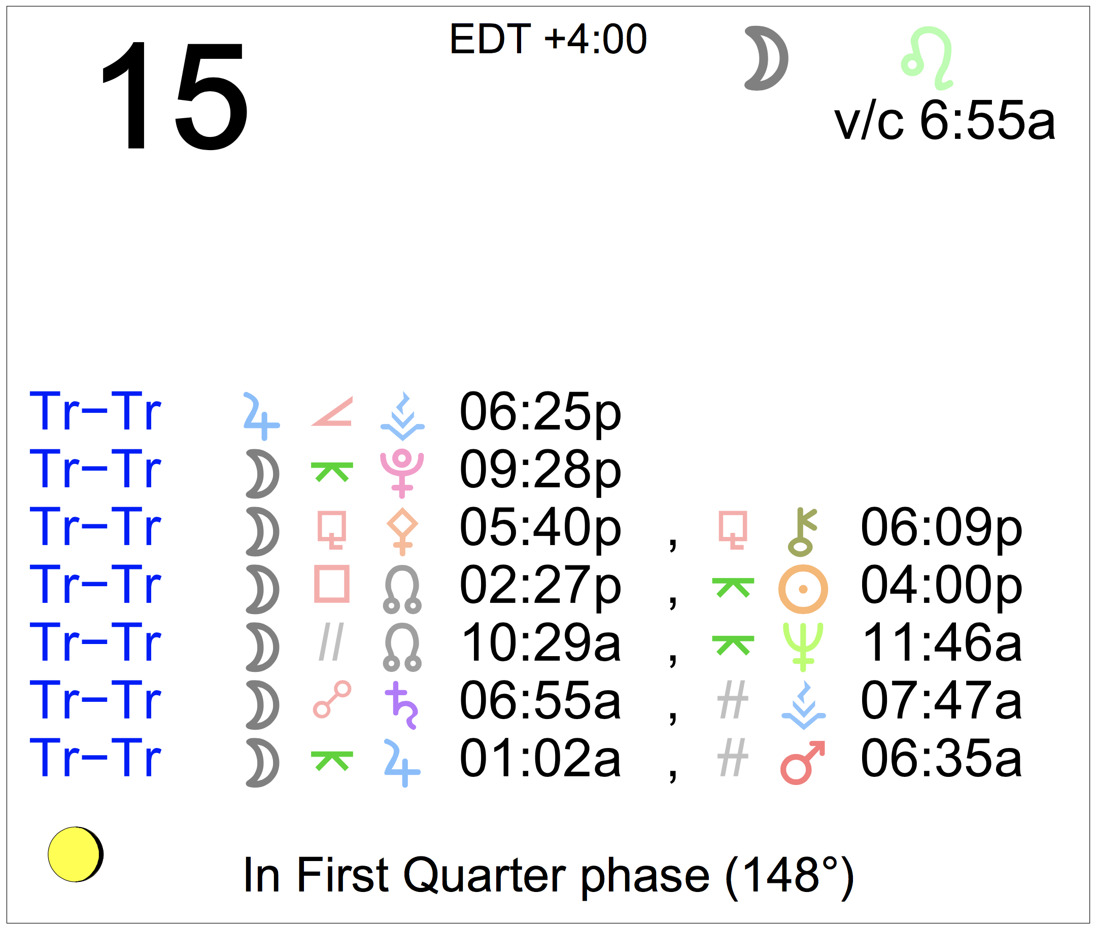 - A void Moon period occurs from 6:55 AM today until tomorrow at 12:58 AM.