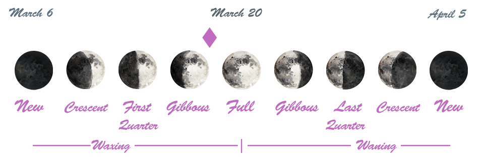 The purple marker above shows where we are in the current moon phase cycle.