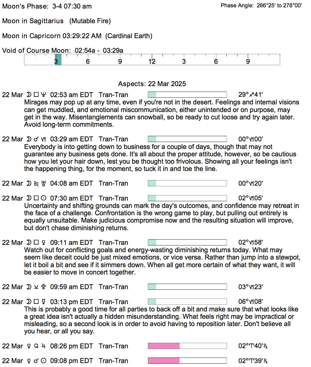 If you’re astrologically inclined and interested in the details of the Astrology of today, here are some of the factors considered in the forecasts:
