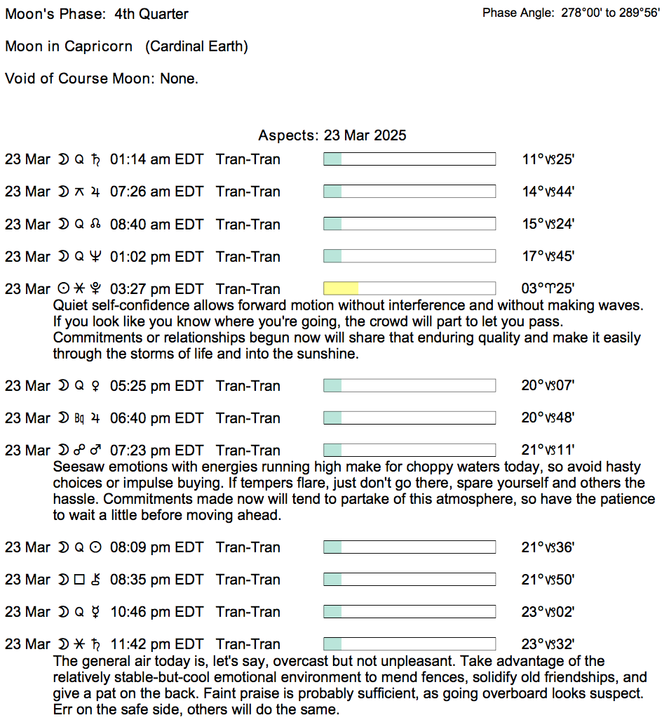 If you’re astrologically inclined and interested in the details of the Astrology of today, here are some of the factors considered in the forecasts: