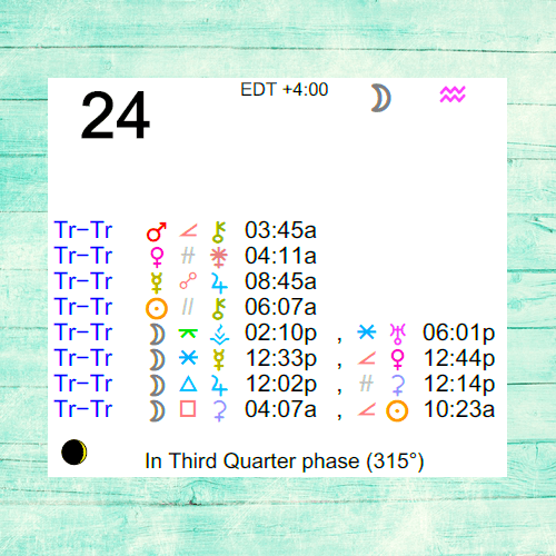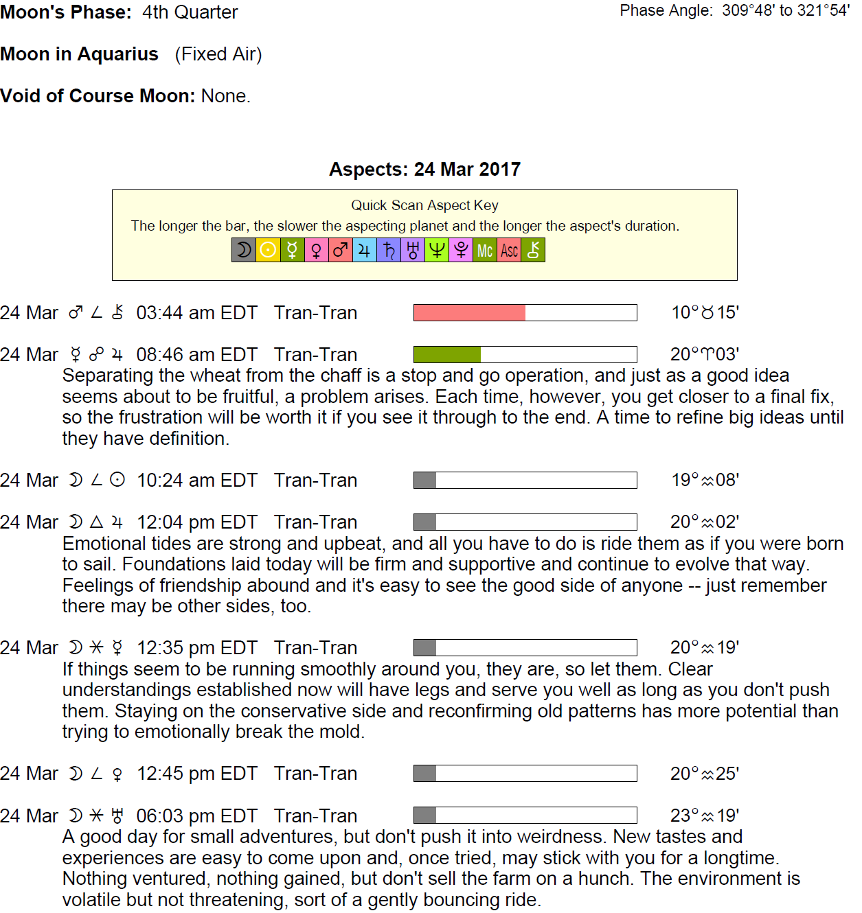 The following aspects (major only) and positions are at noon (EDT) on March 24th: