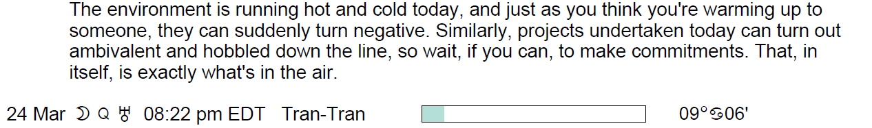 If you’re astrologically inclined and interested in the details of the Astrology of today, here are some of the factors considered in the forecasts: