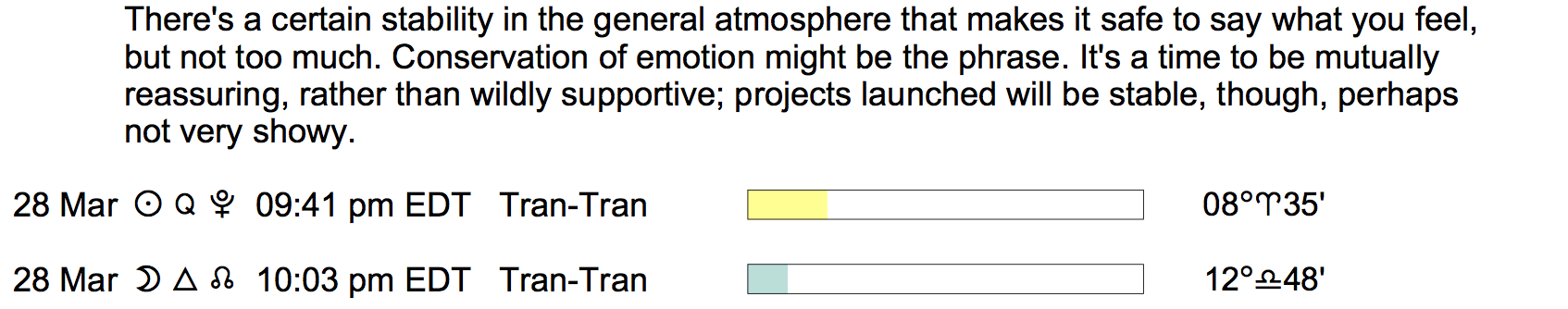 If you’re astrologically inclined and interested in the details of the Astrology of today, here are some of the factors considered in the forecasts: