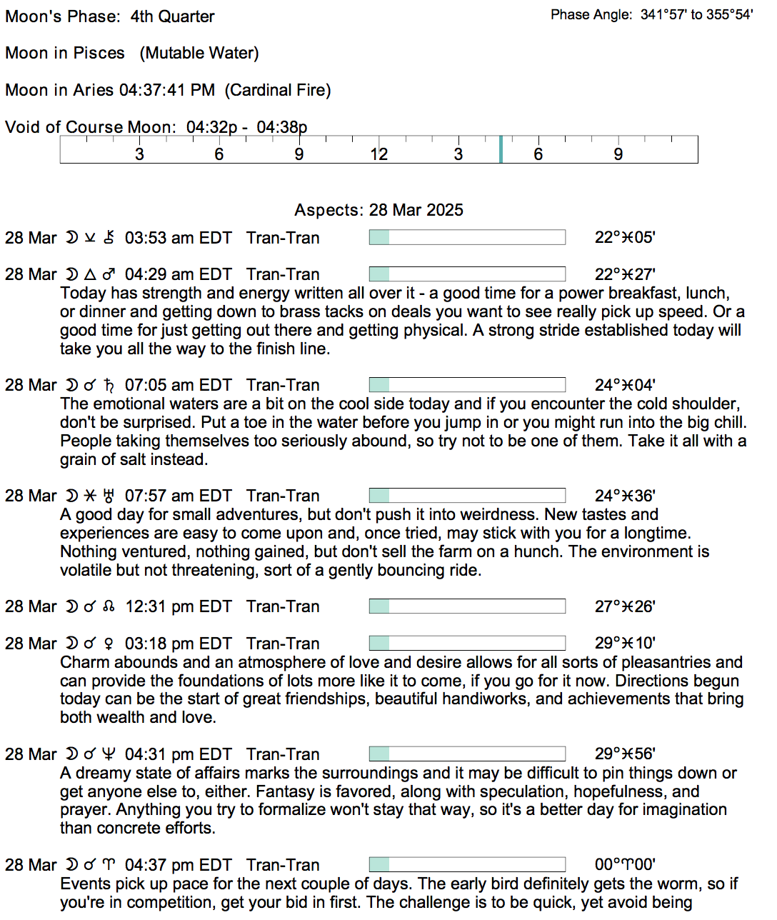 - The Moon is in Pisces until 4:35 PM, when the Moon enters Aries.