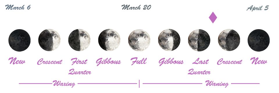 - The Last Quarter Moon occurred on the 28th, and the New Moon will occur on April 5th.