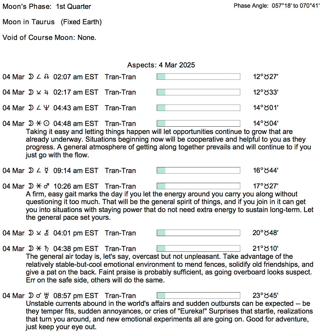 If you’re astrologically inclined and interested in the details of the Astrology of today, here are some of the factors considered in the forecasts: