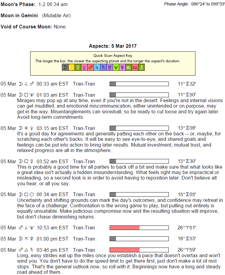 - The Moon is in Gemini all day (until Monday, March 6th, at 7:54 AM).