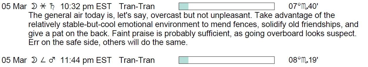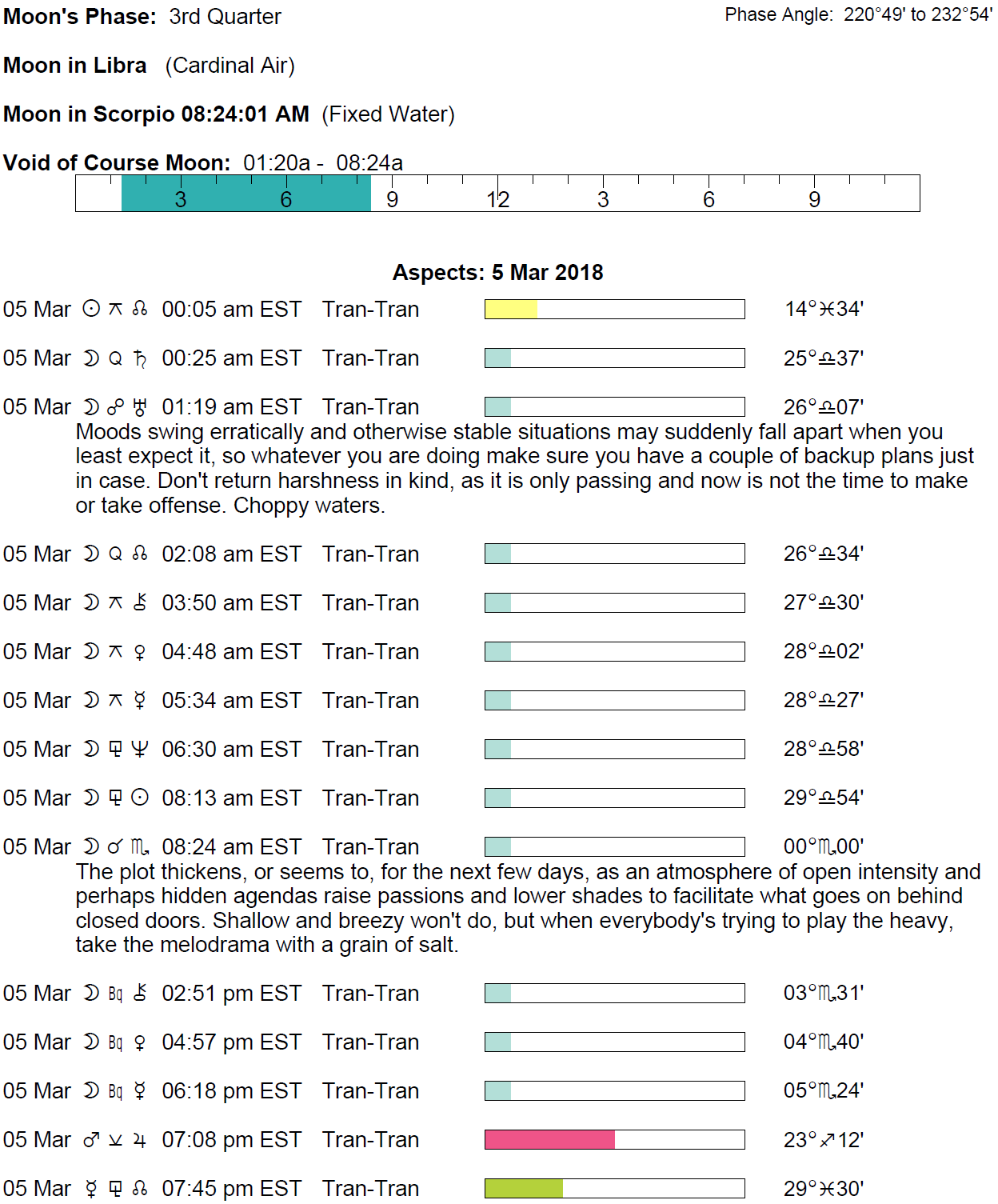 Above are astrological event highlights for the day. Full Horoscopes are on Cafe Astrology. If Your Birthday is March 5th, If Today is Your Birthday full horoscope here.