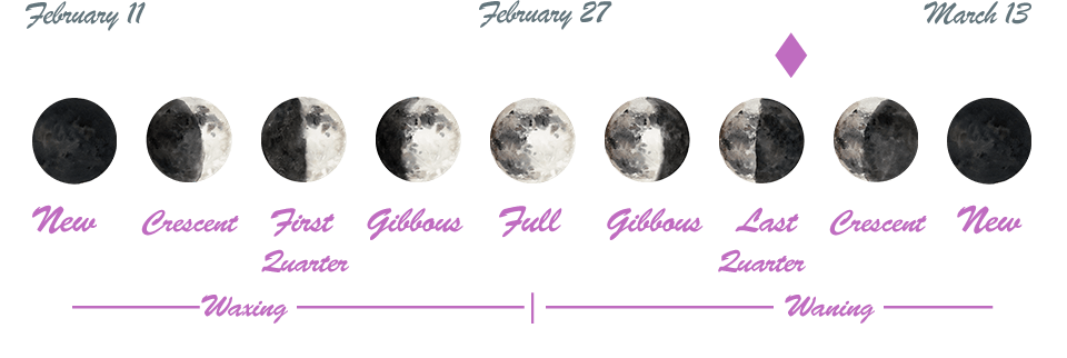 - The Last Quarter Moon occurred yesterday, and the New Moon will occur on March 13th.